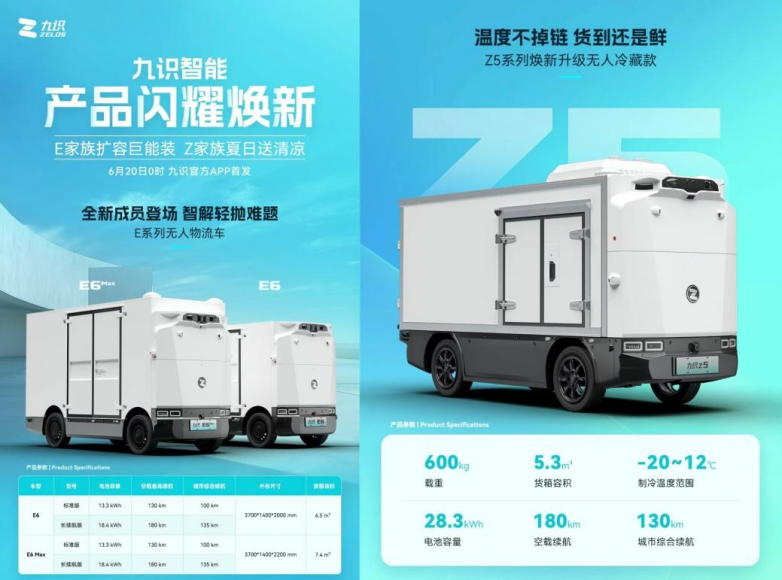 针对轻件散件物流痛点,首发车型E6创新采用无立柱车身设计,在标准尺寸下实现约6.5立方米有效容积,破解“装不下、效率低”难题;为满足电商大促峰值需求,E6 MAX系列将货舱扩容至约7.4立方米,配合结构优化实现装载效率突破性提升;而Z5无人冷藏车搭载-20℃至12℃精准温控系统,为生鲜、医药等高价值货物构建全程可控运输链。这种以需求为导向的开发逻辑,使九识智能构建起覆盖轻件、重货、冷链、长续航等场景的精准化产品矩阵,重新定义物流装备价值标准。