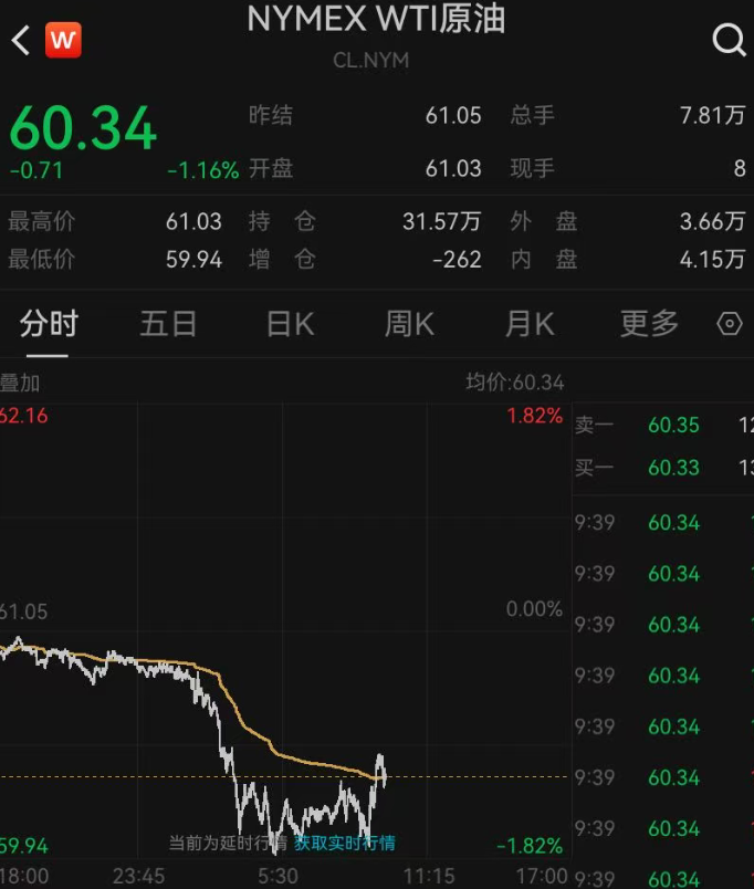 深夜全球市场一片绿!黄金突然跳水油价下跌美