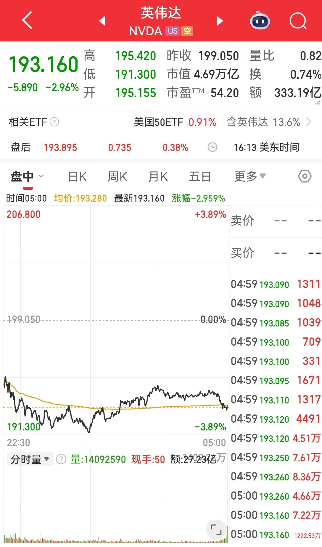 英伟达市值一夜蒸发超万亿元!这只AI科技股大跌
