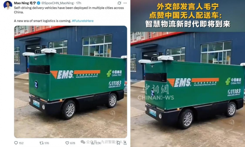 在标准制定层面,九识智能积极参与国际规则制定,加入新加坡标准委员会工作组修订TR-68自动驾驶规范,不仅获颁该国首张无人物流车牌照,而且技术框架成功嵌入FairPrice等本土巨头供应链。更值得瞩目的是,近日中国外交部发言人毛宁在海外社交平台发布九识无人车运行视频,配文“A new era of smart logistics is coming”,24小时内引爆全球关注,被环球网等权威媒体争相报道。截至目前,九识智能业务版图已覆盖日韩、中东等市场,全球化服务网络的扩张步伐持续加速。技术出海、标准输出与全球认可的多重突破,标志着九识智能从产品供应商跃升为全球智慧物流生态构建者。
