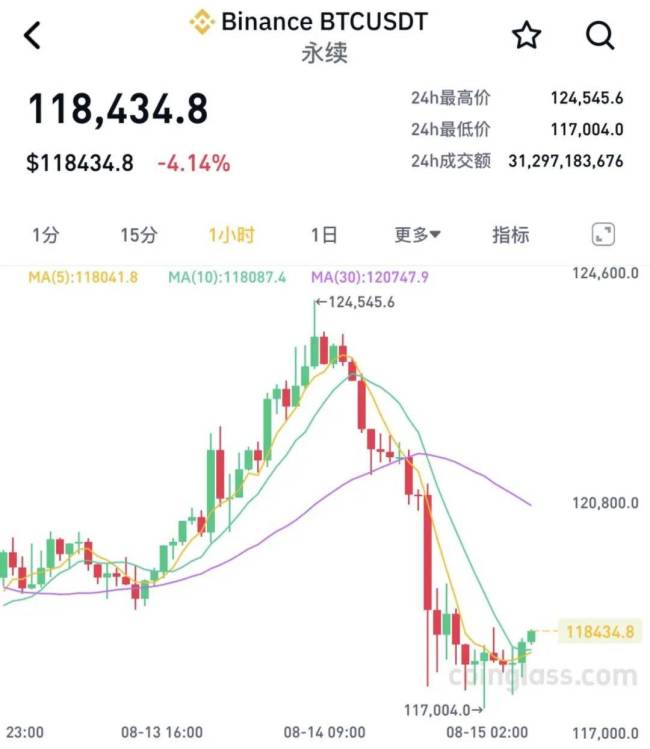 加密货币跳水近23万人爆仓!加密货币市场近日经历了一波剧烈波动。8月14日早间,比特币价格创下历史新高,突破了12.45万美元/枚,但随后持续走低。截至发稿时,比特币价格跌至11.84万美元/枚,跌幅超过4%。
