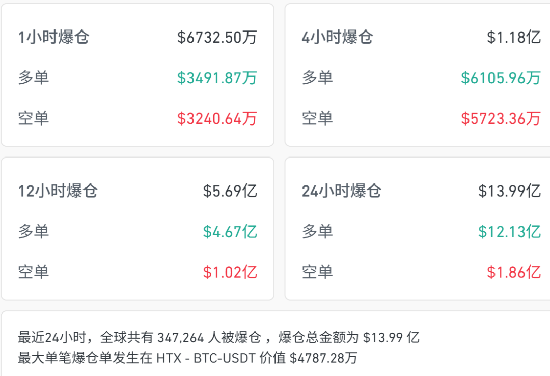 加密货币全线美元/枚。截至北京时间11月4日23:07,24小时内加密货币全市场超34万人被爆仓,爆仓金额13.99亿美元。