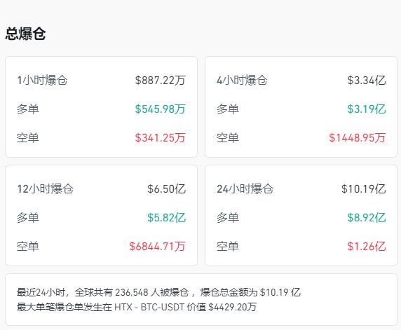 比特币跌超6%以太坊跌超10%加密货币全网24小时超