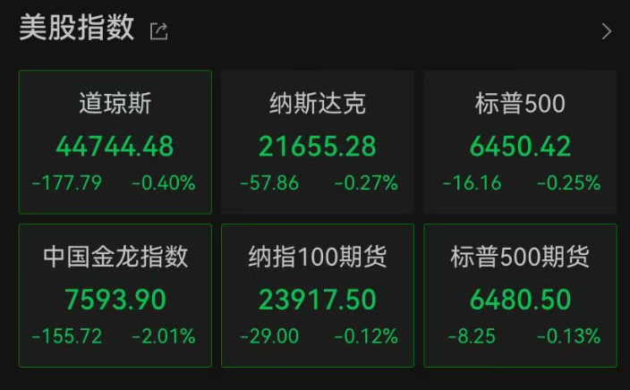 8月14日晚美股集体低开,截至发稿,道指跌0.4%,纳指跌0.27%,标普500指数跌0.25%。