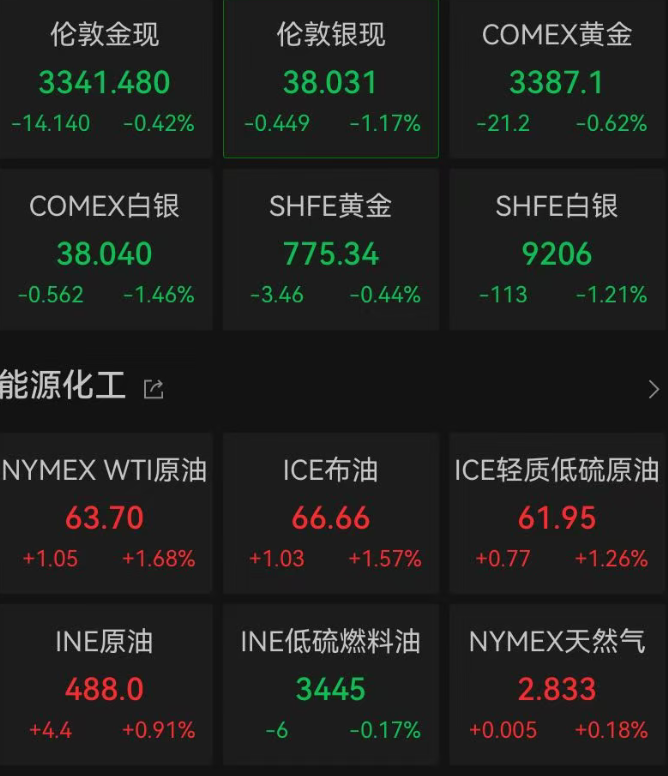 此外,黄金也小幅跳水,截至发稿,现货黄金跌0.4%,现货白银更是跌1%。